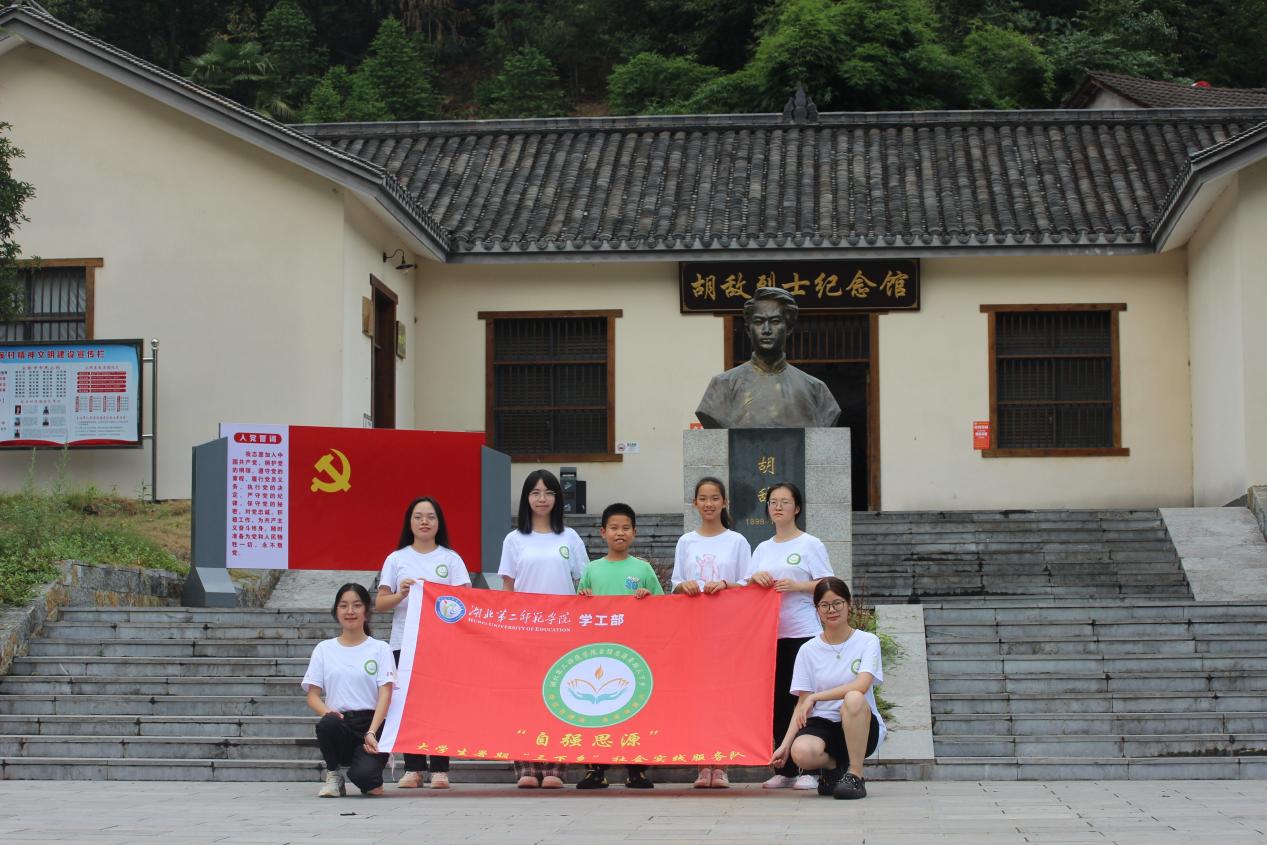 (图为“自强思源”社会实践队与学生在胡敌烈士纪念馆前合影留念)