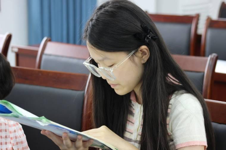 (图为志愿者正在看小朋友的作业,准备为小朋友讲解不会的习题)