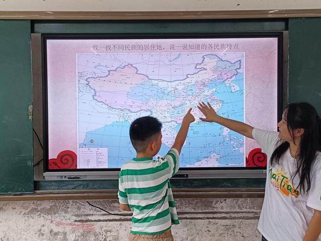 锦绣山河,壮美神州,在志愿者的引导下,孩子们争先恐后地举手,表达自己对祖国的热爱,“我多想去北京天安门感受庄严的升旗仪式”、“我多想祖国越来越昌盛”短短的一句话,是孩子们表达语言的极限,而不是他们心中对祖国热爱的极限,他们骄傲地说自己是少先队员,以后要成为国家栋梁,为祖国效力。孩子们年纪虽小,却也知道如果没有中国共产党的努力,没有祖国的庇佑,他们不会衣食无忧,不会像此刻这般坐在教室里学习知识,是祖国给他们提供的完备的基础设施和安定的环境,每一个孩子都应该将祖国的恩情铭记于心,怀有一颗感恩之心。