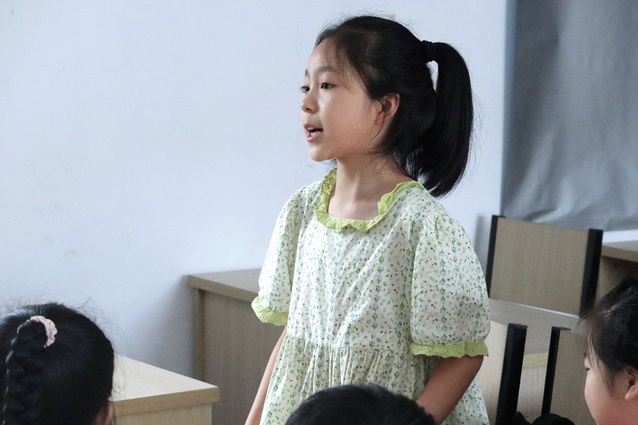 (图为孩子积极回答志愿者老师提出的问题)