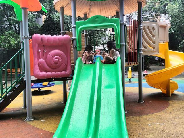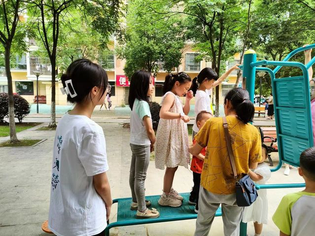 (图为孩子们闲暇时光在社区内玩游乐设施。通讯员 汪鑫 供图)