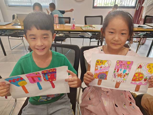志愿者首先展示各地的特色建筑,比如德国的猫形幼儿园;然后给学生们提供了冰淇凌模型,让它们模仿并画出自己心意的冰淇凌;最后志愿者教学生画花朵,比如喇叭花,向日葵等等,并教他们制作成花束。本次课程鼓励学生勤于动手,发挥自己的想象力和创造力,不仅让他们体验了手工制作的乐趣,更是锻炼了学生的动手能力,让孩子们收获颇多。