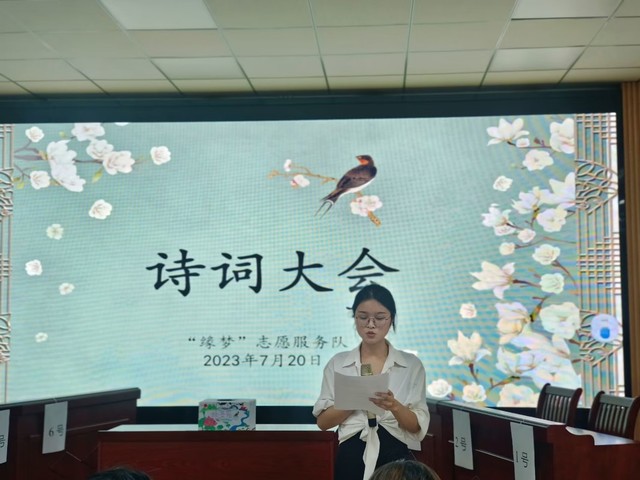 本网讯(通讯员 杨俊杰)诗词是优秀的中国传统文化之一,记载着华夏源远流长的历史,经久不衰。为提高学生们的文化软实力,展现学生们的诗书气质和优良素养,7月20日,湖北第二师范学院赴咸宁市“缘梦”志愿服务队于崇阳县第三小学大白校区举行诗词大会。此次活动分为四个环节“飞花令”、“诗词文学常识”、“诗词默写”和颁奖仪式。此次活动旨在丰富学生课余生活,激发学生们对古诗词的热爱,让传统古诗词的传承更好的完成。