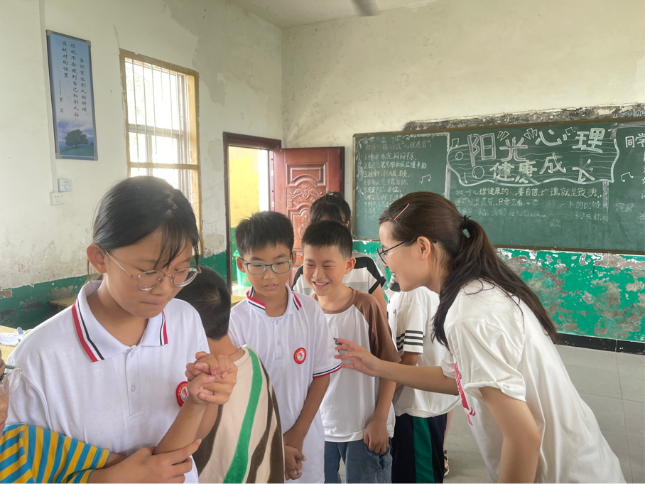 本网讯(通讯员 张丽雯)为了拉近志愿者与学生之间的距离,为此次支教活动留下美好的回忆,7月22日,湖北第二师范学院四叶草青年志愿服务队第二分队于监利市分盐镇桃花小学组织开展了以“趣味游戏促情感”为主题的特色课堂。