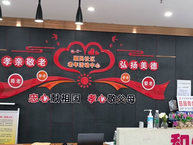 (图为社区老年服务中心的宣传标语,社区重视文化建设传播,有利于创建文明祥和社区,为老年人提供美丽的社区环境。中国青年网通讯员 刘璐 摄)