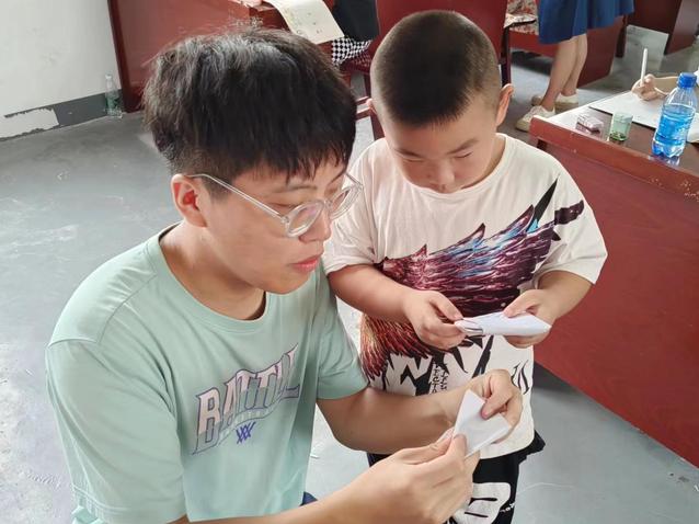 (图为支教老师耐心为学生讲解折纸技巧。本讯网 通讯员 杜永鹏 摄)