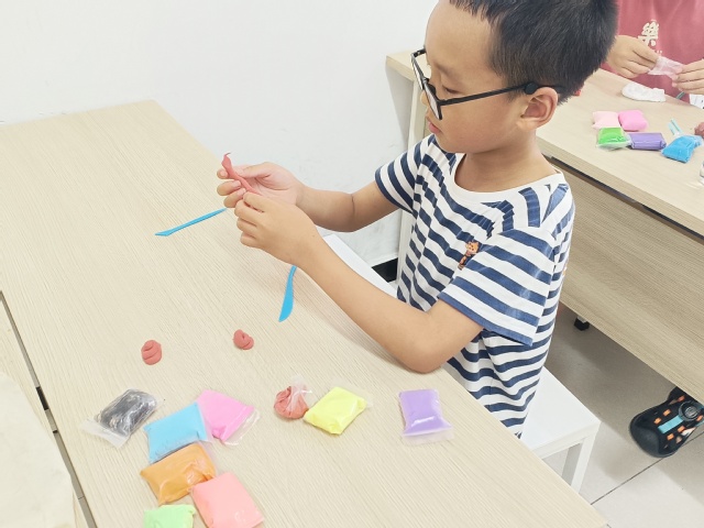 (图为小朋友制作手工黏土)