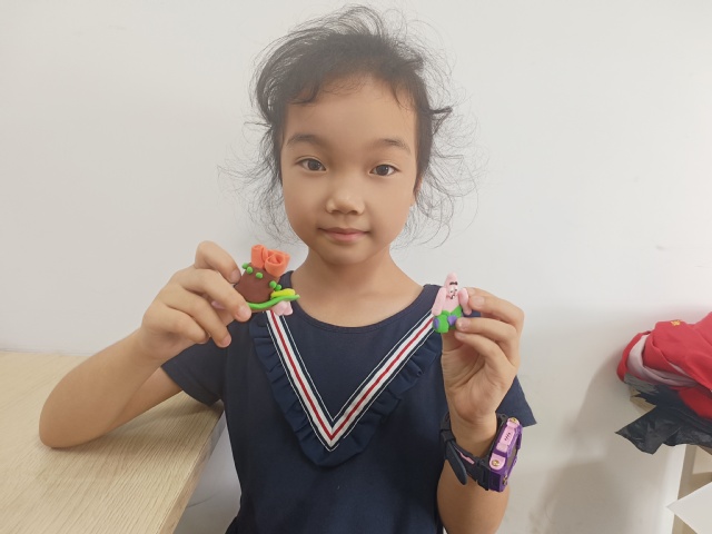 经过一节课的创造,开始还是一个个没有形状的彩色泥团的黏土现在变成了孩子们手中精彩的作品。有的小朋友做完作品就着急的展示给同桌和我们的志愿者们看,那一个个黏土被孩子们的童心施予了魔法,都转眼之间变成了孩子们眼中最有趣的玩物。