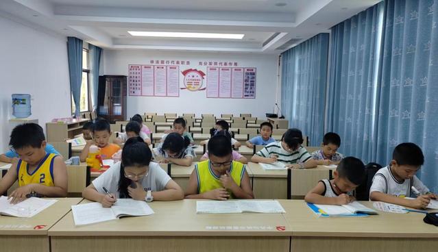(图为作业辅导课上小朋友安静地做自己的暑假作业)
