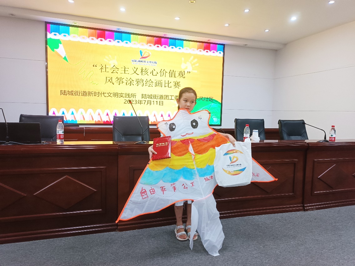 本网讯(通讯员 雷驰越)为发展孩子们的审美感觉,培养孩子们的创造力与感受力,2023年7月下旬,陆城街道新时代文明实践所,陆城街道团工委,陆城东风社区与我校“情系楚蜀,筑梦宜都”宜都社会实践队队员于东风社区会议室一同开办了“社会主义核心价值观”风筝和绘画比赛。全体学生与学生家长参加了这次比赛并在这次比赛中大放异彩。