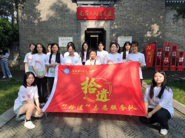 (图为“拾遗”队员们与武汉革命纪念馆的小志愿者在毛泽东同志故居门前的合影)