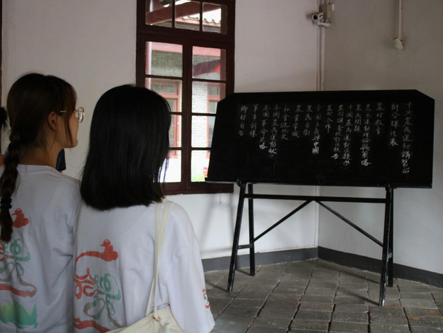 (图为“拾遗”队员们在认真阅读武昌农讲所旧址纪念馆中教室黑板上的文字)