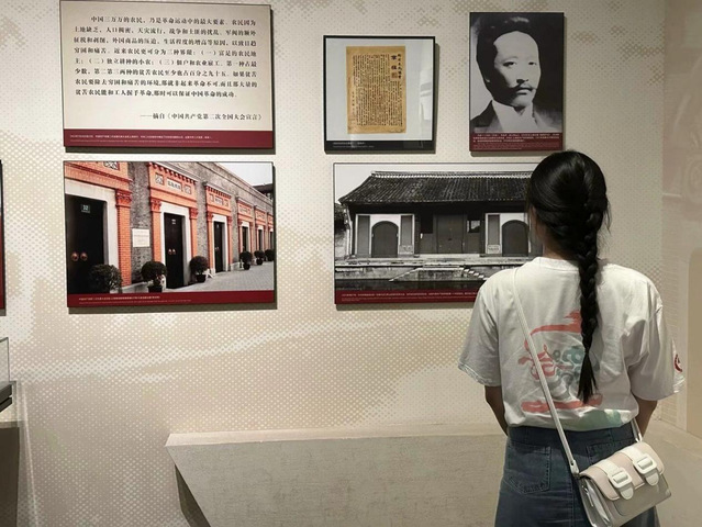 (图为“拾遗”队员参观武昌中央农民运动讲习历史陈列馆,认真了解中国共产党第二次全国大会相关历史)