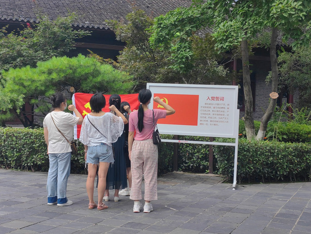 (图为游客在武昌农讲所旧址纪念馆入口处体验宣读入党誓词)