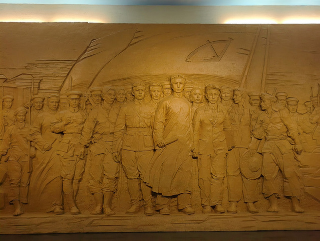(图为武昌中央农民运动讲习历史陈列馆入口处的浮雕)