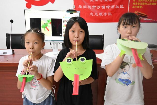 (图为学生独立完成并展示《吐舌头的小青蛙》作品。通讯员 袁东祺 摄)