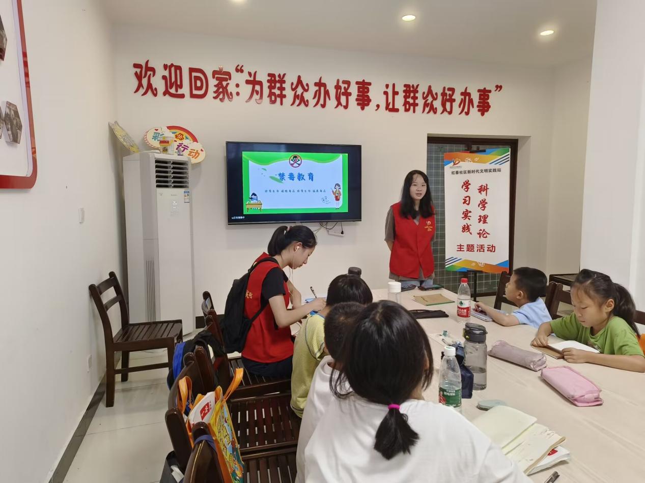 本网讯(通讯员 马孟洁)为增强儿童对于毒品的认知和警惕性,引导他们健康成长,为他们的美好未来奠定坚实基础。7月25日,我校外国语学院“情系楚蜀,筑梦宜都”社会实践队为宜都市陆城街道红春社区的孩子们带来了一堂深刻而有意义的禁毒知识宣传课。