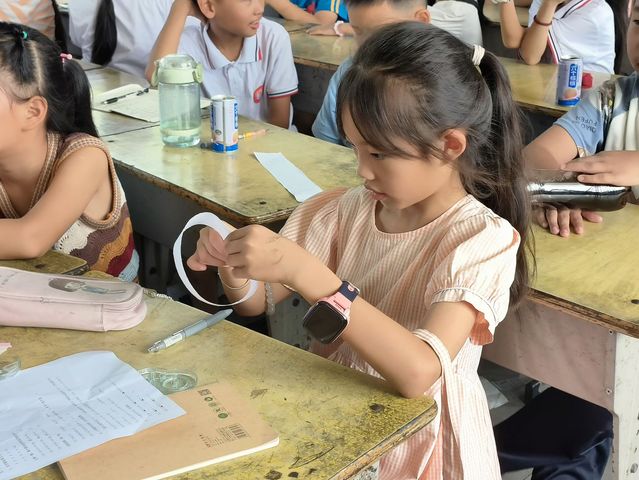 课上,志愿者先通过视频让学生们总体认识了莫比乌斯环的奇妙,接着详细讲解了莫比乌斯环的意义和应用,为了让学生们更好地认识到莫比乌斯环的特性,志愿者为学生们准备了胶带、白纸、剪刀等工具,让学生们自主制作莫比乌斯环。面对接下来的动手操作部分,小朋友们积极探索,纷纷发表着自己的观点。在学生们探索之后,志愿者对如何进行制作莫比乌斯环进行详细讲解,听着志愿者的讲解,学生们制作起莫比乌斯环变得得心应手起来。通过对莫比乌斯环的制作和实验让同学们更深刻的领悟到了世界的无穷无尽,万事万物是互通互联的,在探究和熟悉莫比乌斯带的过程中积存数学活动阅历。