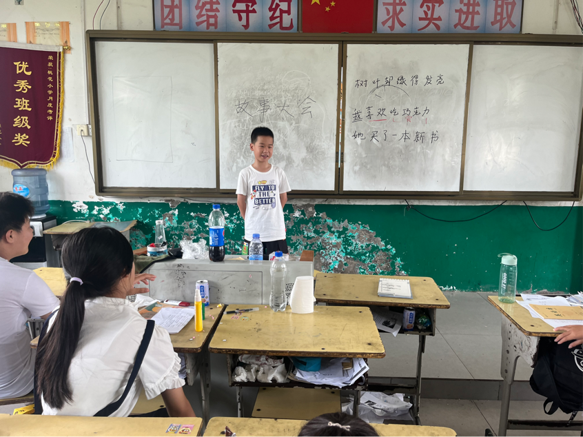 本网讯(通讯员 张丽雯)为提高学生学习语文的兴趣,扩大学生的视野,增长他们的课外知识,丰富词汇量,7月26日,湖北第二师范学院四叶草青年志愿服务队第二分队于监利市分盐镇桃花小学组织开展了以“我来讲故事”为主题的特色课堂。本次课堂围绕着自己熟知的成语故事展开,同学们充分调动自己的课外知识,进行演说。