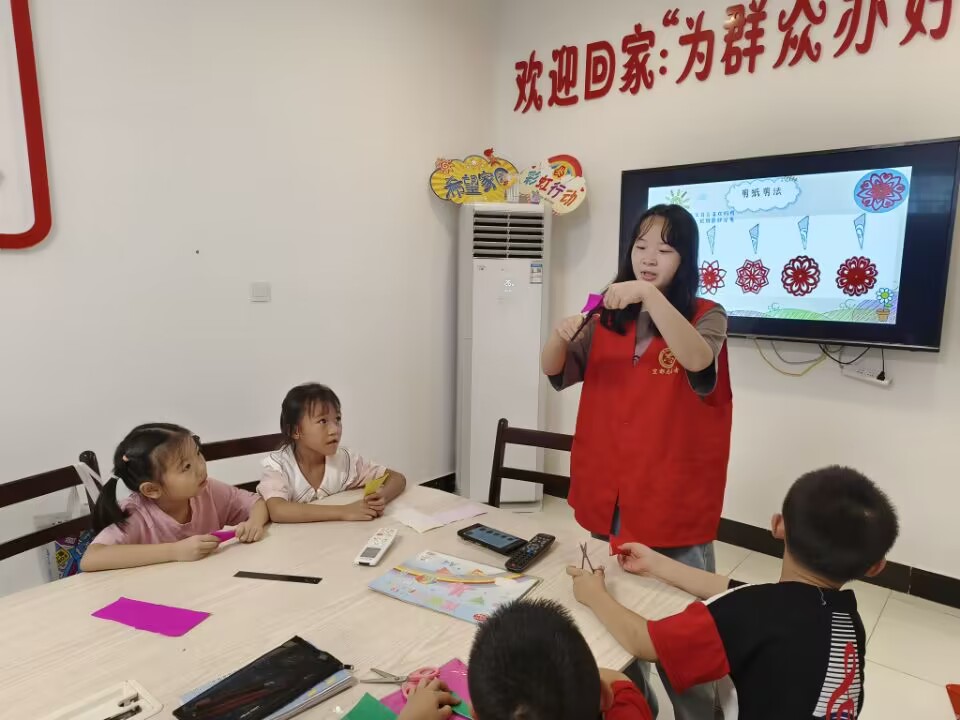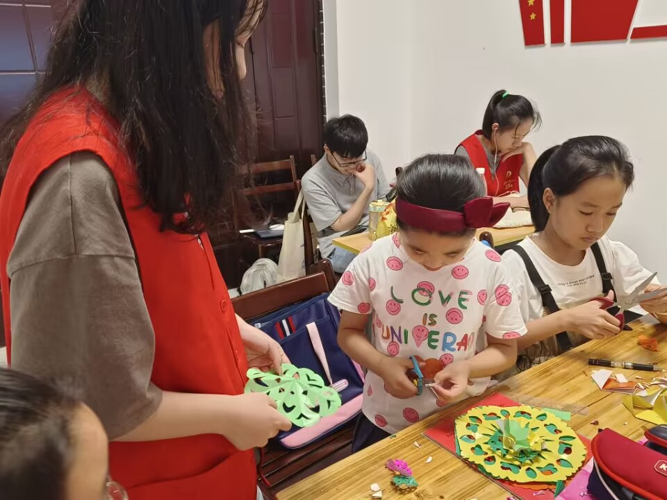 本网讯(通讯员 马孟洁)为让孩子们感受到中国传统文化的魅力并培养他们的创意思维和团队协作能力。7月21日,我校外国语学院“情系楚蜀,筑梦宜都”暑期三下乡实践队在宜都市陆城街道红春社区开展了以“传承中华文化,弘扬剪纸艺术”为主题的趣味剪纸课。
