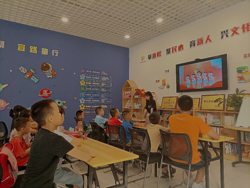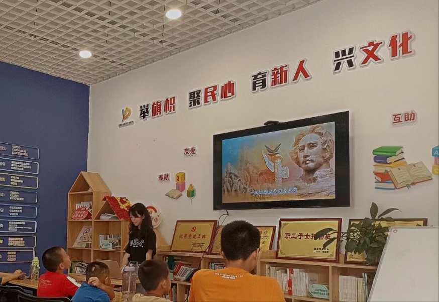 本网讯(通讯员 郭忆童)为了使学生通过学习党史,激发他们热爱中国共产党的热情,同时培养学生的爱国之情和感恩党之心,湖北第二师范学院“情系楚蜀,筑梦宜都”社会实践队八字桥分队7月26日在宜都市八字桥社区“希望家园”开展了红领巾心向党的主题课。