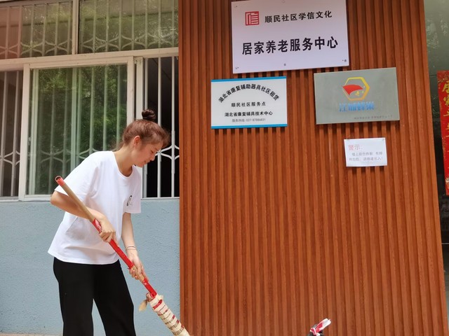 (图为志愿服务队队员对社区的居家养老服务中心大环境进行卫生清洁。通讯员 陈子慧 摄)