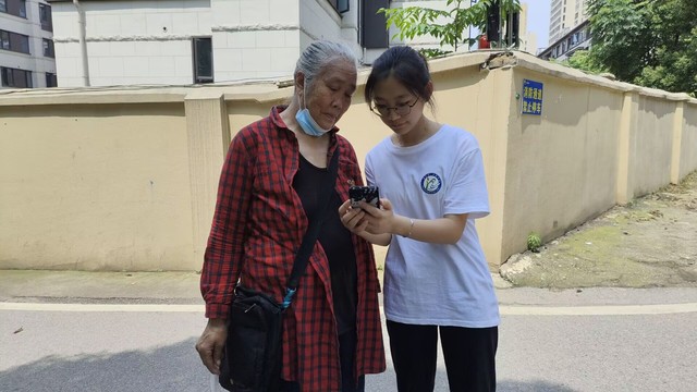 (图为志愿服务队队员耐心地教导老奶奶使用智能手机。通讯员 刘璐 摄)