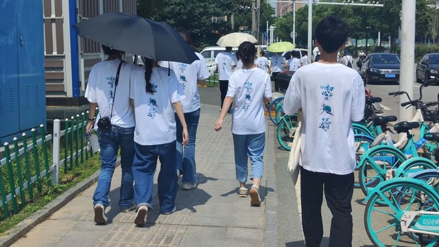 (图为志愿者们前往社区里进行实践调研。通讯员 王敏煜 摄)