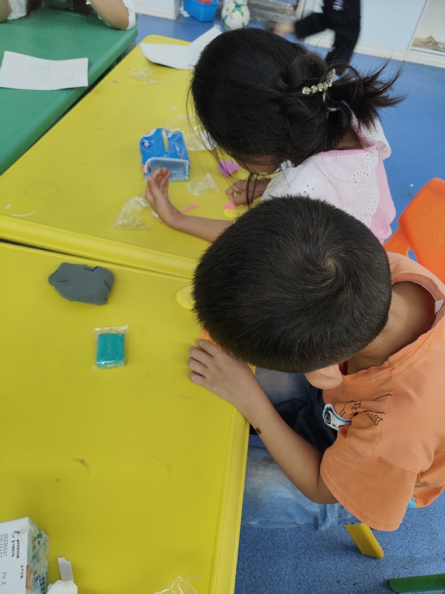 (图为小朋友们卖力做粘土作品)