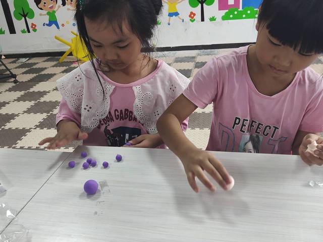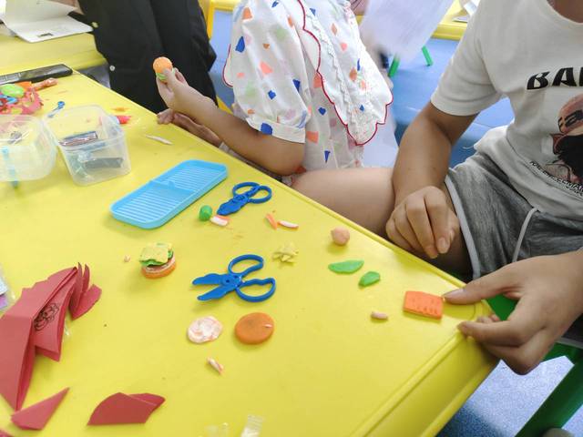 (图为同学们使用多种颜色的粘土进行手工制作)