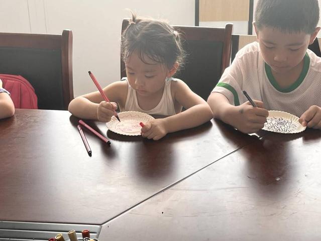 在孩子们绘画青花瓷纹饰时,都一改平日的调皮吵闹,认真比对着图案样例,绘画出自己喜欢的样式。在志愿者的帮助下,孩子们纷纷完成自己的作品,虽然笔迹稚嫩,但每个人都用心地描绘出花朵等图案,充分发挥了自己的创造力,展现出各自的审美情操。