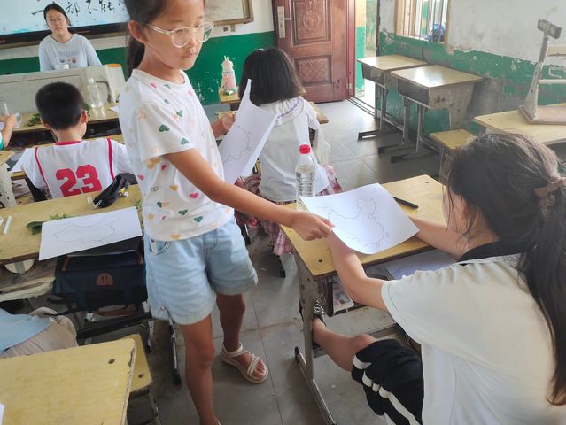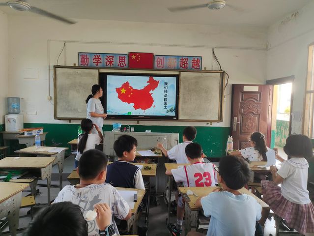 本网讯(通讯员 吴心雨)中国的领土既有宽广的陆地又有辽阔的海洋。它是国家和民族赖以生存和发展的基本环境条件,是发展经济、巩固国防的自然基础。为了让学生们了解中国国土的基本情况,做好学生们的爱国主题教育活动,培养学生们的家国认同感,教育学生们为守护领土、报效祖国立大志学本领,增强报国的能力,坚定报国的决心,湖北第二师范学院四叶草青年志愿服务队第二分队的志愿者们于7月28日为监利市分盐镇桃花小学的学生们带去了认识领土课程。在课上,志愿者先为学生们讲解了中国领土的广袤和意义,并详细讲解了中国领土之最,还选择小游戏加深学生们的记忆。最后,让学生们拿出提前准备好的树叶,用树叶拼贴国土的形状,学生们之间相互讨论帮助,志愿者也会观察并及时为学生们提供帮助。本次课程培养了学生们的爱国之情、砥砺强国之志、实践报国之行,有利于新时代社会主义建设者和接班人主动承担起民族复兴的历史重任和时代使命。