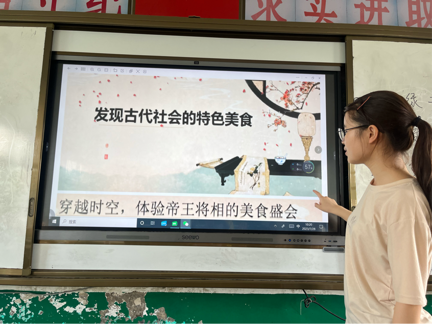 本网讯(通讯员 张丽雯)中国传统美食文化是中华民族的瑰宝。为了拓宽学生的视野,让学生进一步了解古代的美食文化,7月28日上午,湖北第二师范学院四叶草青年志愿服务队第二分队于监利市分盐镇桃花小学组织开展了以“考察古代特色美食”为主题的特色课堂。