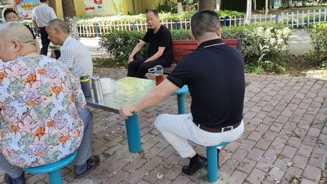 (图为乡村振兴战略下,老人们有了更多的时间喝茶下棋)