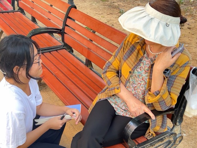 (图为小队成员与当地村民询问乡镇的疫情防控工作如何,并向她了解了她平时会怎样注意防控疾病。湛欣研 供图)