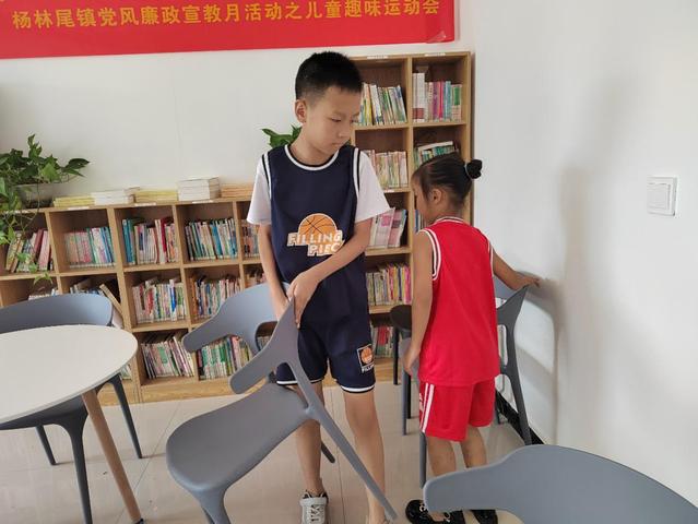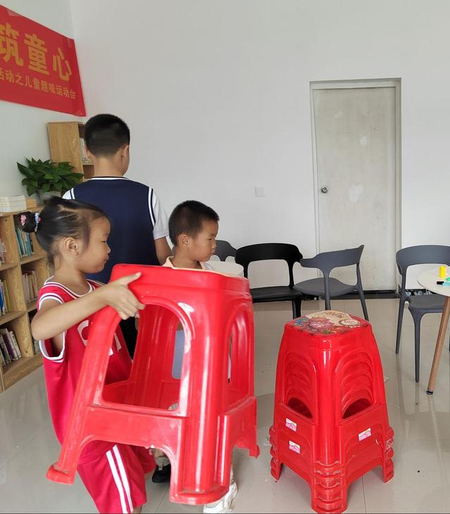 (图为小朋友们搬椅子,将椅子排列整齐)