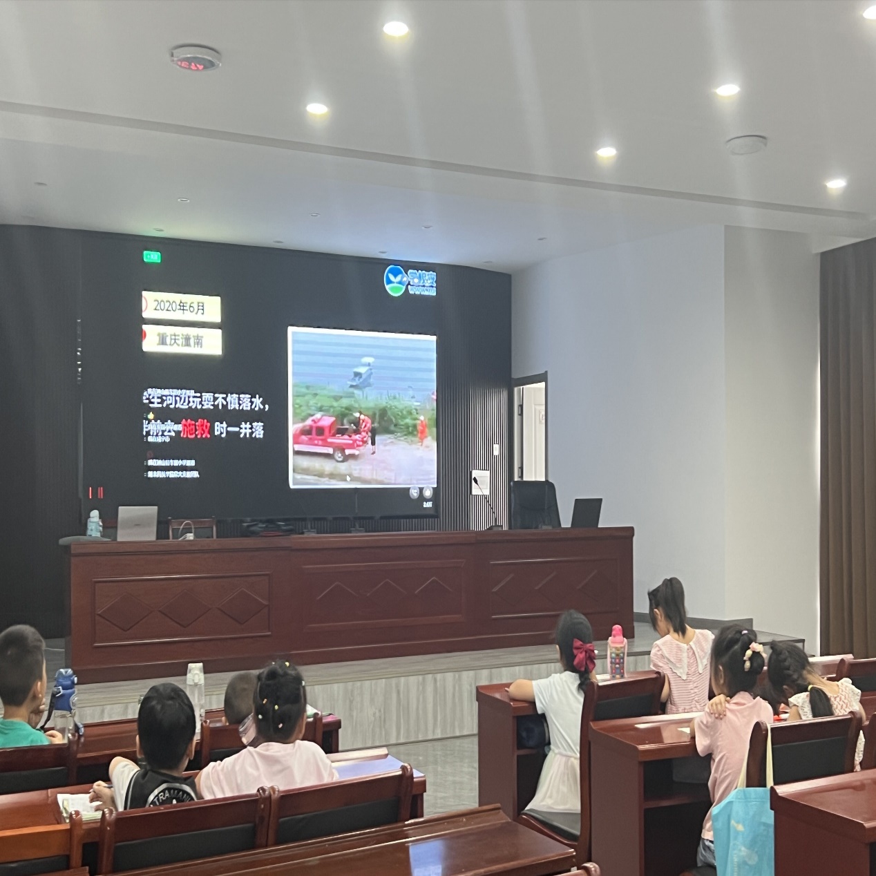 (图为小朋友们观看溺水真实事例)