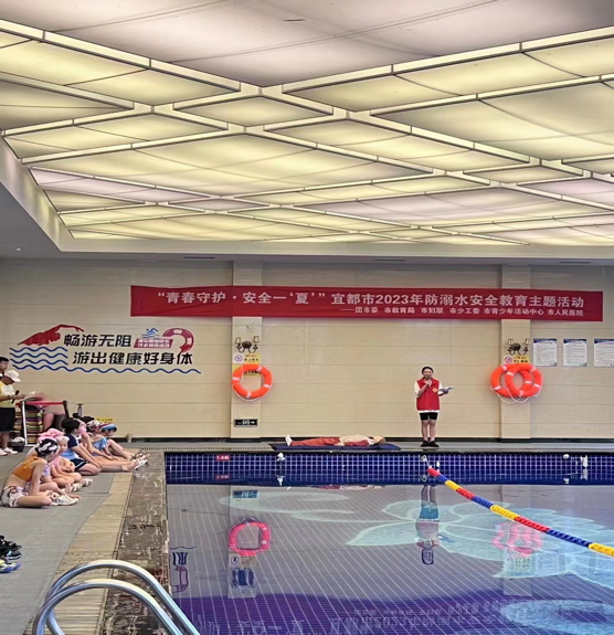 本网讯(通讯员 周宇航)2023年7月24日我校“情系楚蜀,筑梦宜都”暑期社会实践队携手碧桂园清江明珠游泳馆、团市委、市教育局、市妇联、市少工委、市青少年活动中心、市人民医院共同举办的防溺水安全主题教育活动。用专业和服务护航全市青少年“泳”往直前。