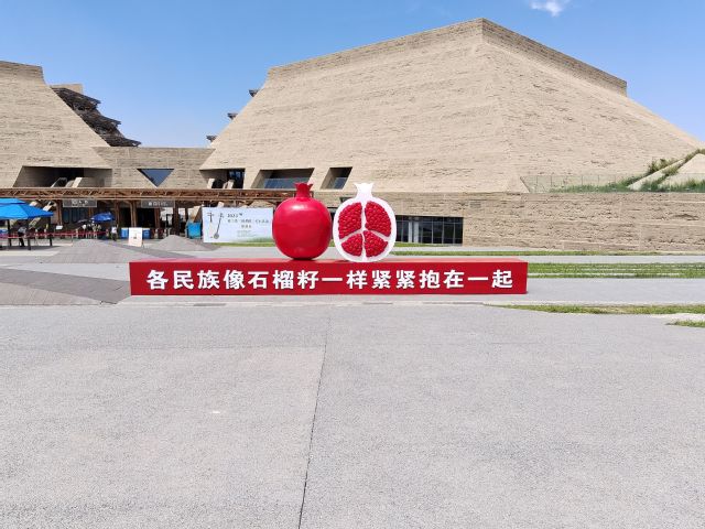 (图为昭君博物院入口处与民族团结相关的宣传标语)
