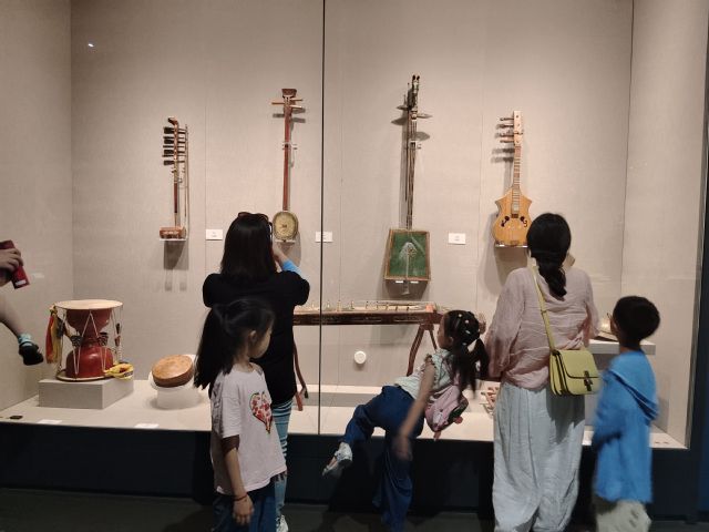 (图为游客参观内蒙古博物院内展出的蒙古族乐器)
