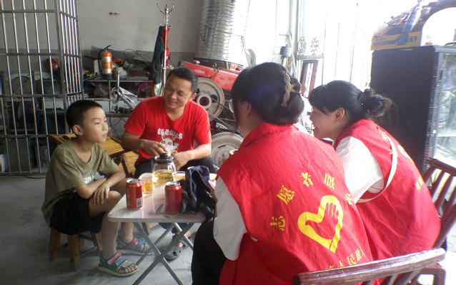 告别前一个学生的家长,志愿者们跟着导航前往下一个学生的家里。“是你家长让你来接老师的嘛?”“不是,是我自己看老师还没到,想来接老师你们,就在这个路口等着了。”还没有走到家门口,小航就在路口等着志愿者们的到来。在小航的引导下,志愿者们走进了他的家中,刚进门小航的爸爸便热情地张罗着,将家中的茶叶泡好,亲手端给志愿者们,在志愿者们的劝说下才肯坐下来好好聊天。经过几分钟的交流,大家的陌生感得以消除,闲谈式的聊天拉近了志愿者们与学生家长之间的距离。据悉,小航父母的知识水平有限,所从事的工作技术含量较少,薪资收入也只能够勉强维持家庭的开支,加之由于父母工作较为辛苦繁忙,对于孩子的教育有些力不从心。