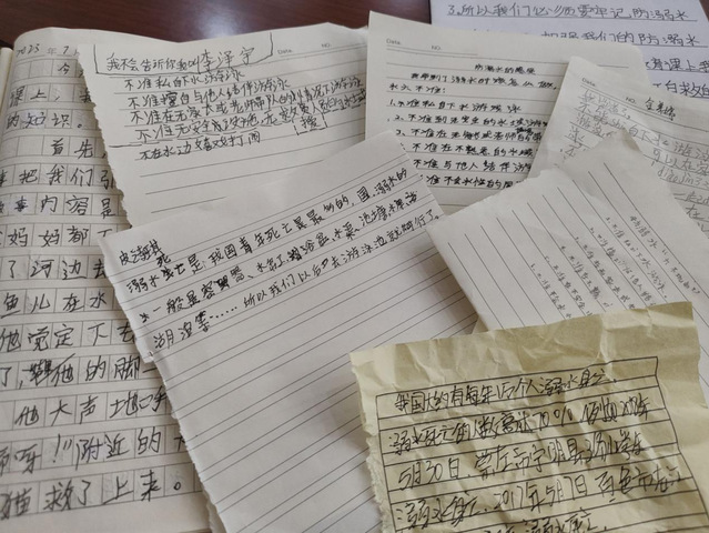 活动最后,同学们纷纷写下自己关于本次防溺水安全教育的心得体会。其中,李泽凯同学写到,通过此次预防溺水的安全主题教育活动,他了解到了一定的防溺水知识和游泳时的注意事项,认识到了水中的潜在危险,掌握了一些自救和施救的技能以及正确使用救生工具的方法,更加清楚了保护自身和他人安全的重要性,并表示他将主动宣传防溺水知识,帮助他人提高防溺水意识,共同减少溺水事故的发生。