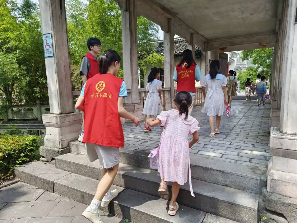 (图为志愿者带领小朋友们去参观博物馆的路上)