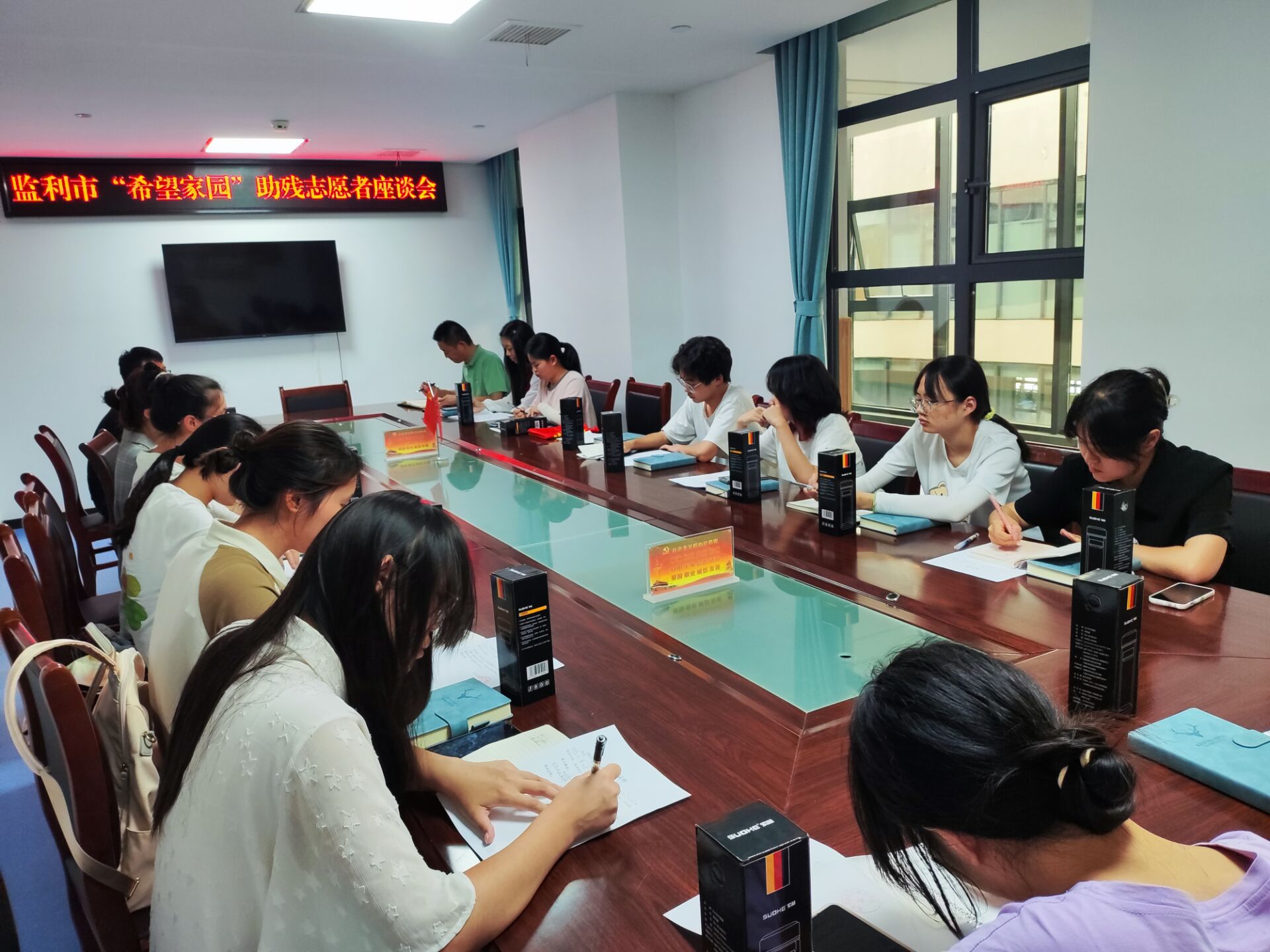本网讯(通讯员 李鑫欣)7月28日下午,监利市“希望家园”助残志愿者座谈会于监利市残疾人联合会(以下简称“残联”)六楼办公室顺利开展。监利市残联代表赵理事长、监利市残疾人康复中心(以下简称“康复中心”)代表张主任和湖北第二师范学院四叶草青年志愿服务队指导老师唐志强以及第八、九小队全体成员参与本次会议。