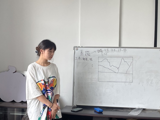 (图为志愿者在绘画课上为孩子们讲解素描的绘画技巧和构图方式,并提醒同学们准备好相应的工具。通讯员 肖庆琳 摄)