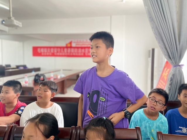 (图为参加绘画课的学生勇敢地站起来向同学们分享自己的绘画经历。通讯员 向丹 摄)