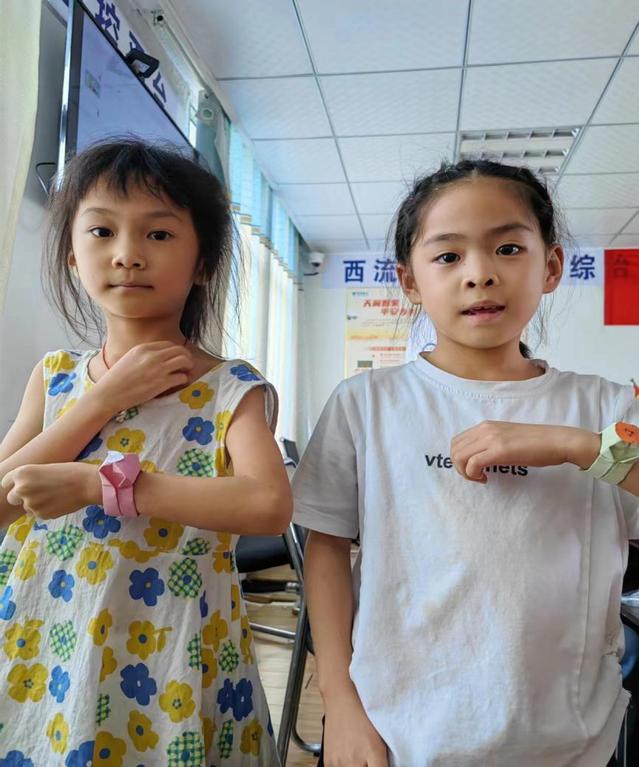 (图为孩子们根据老师所教的步骤动手做一做,同桌相互沟通,互相帮忙。通讯员 李春霖 摄)