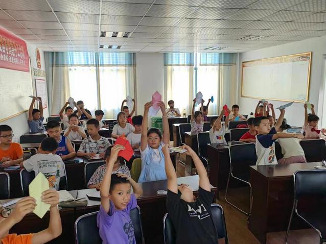 (图为每个孩子根据老师所展示的ppt完成了其中一个部分,老师让孩子们高举自己的作品。通讯员 李春霖 摄)