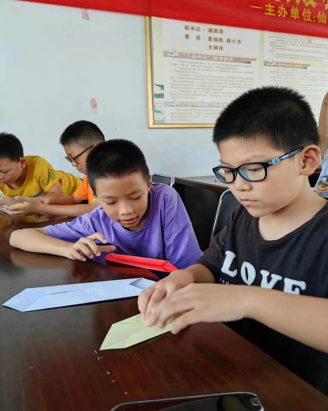 (图为老师给孩子们分发纸张、胶带工具等。孩子们兴趣高涨,每个人都很热情。通讯员 李春霖 摄)