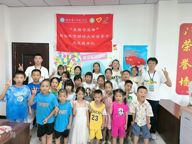本网讯(通讯员 肖述洋)我校赴仙桃市“麦田守望者”志愿服务队响应国家三下乡政策的号召来到仙桃市38个点位村镇,为当地教育事业发展贡献青春力量。